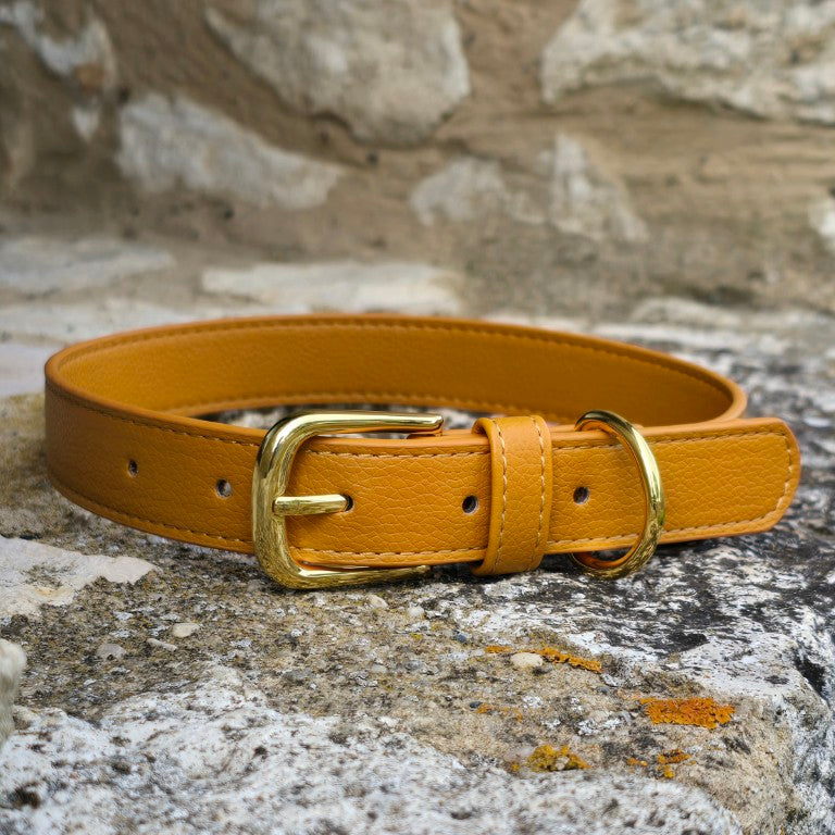 The Vegan Grain Leather Dog Collar is a stylish and fashionable choice for your furry friend. Made from high-quality vegan leather, this collar is durable and cruelty-free. With a fabulous selection of colors to choose from, your dog will be both fashionable and comfortable.